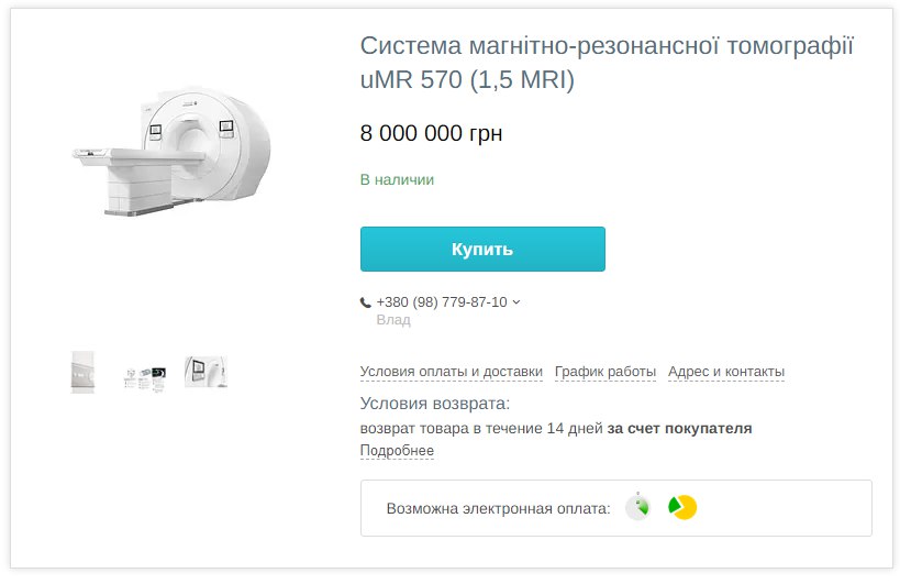В открытых источниках Интернет, мы попытались разыскать ценник на магнитно-резонансный томограф с аналогичными или схожими техническими характеристиками. По запросу мы получили среднюю сумму – от 8 до 11 миллионов гривен.