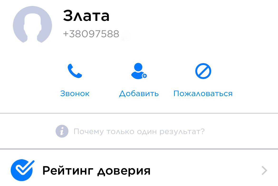 Наша редакція вирішила перевірити цей факт за допомогою мобільної програми «Getcontact». Зазначивши відомий номер, програма видає ім’я його власника. Результат ви можете побачити на фото.